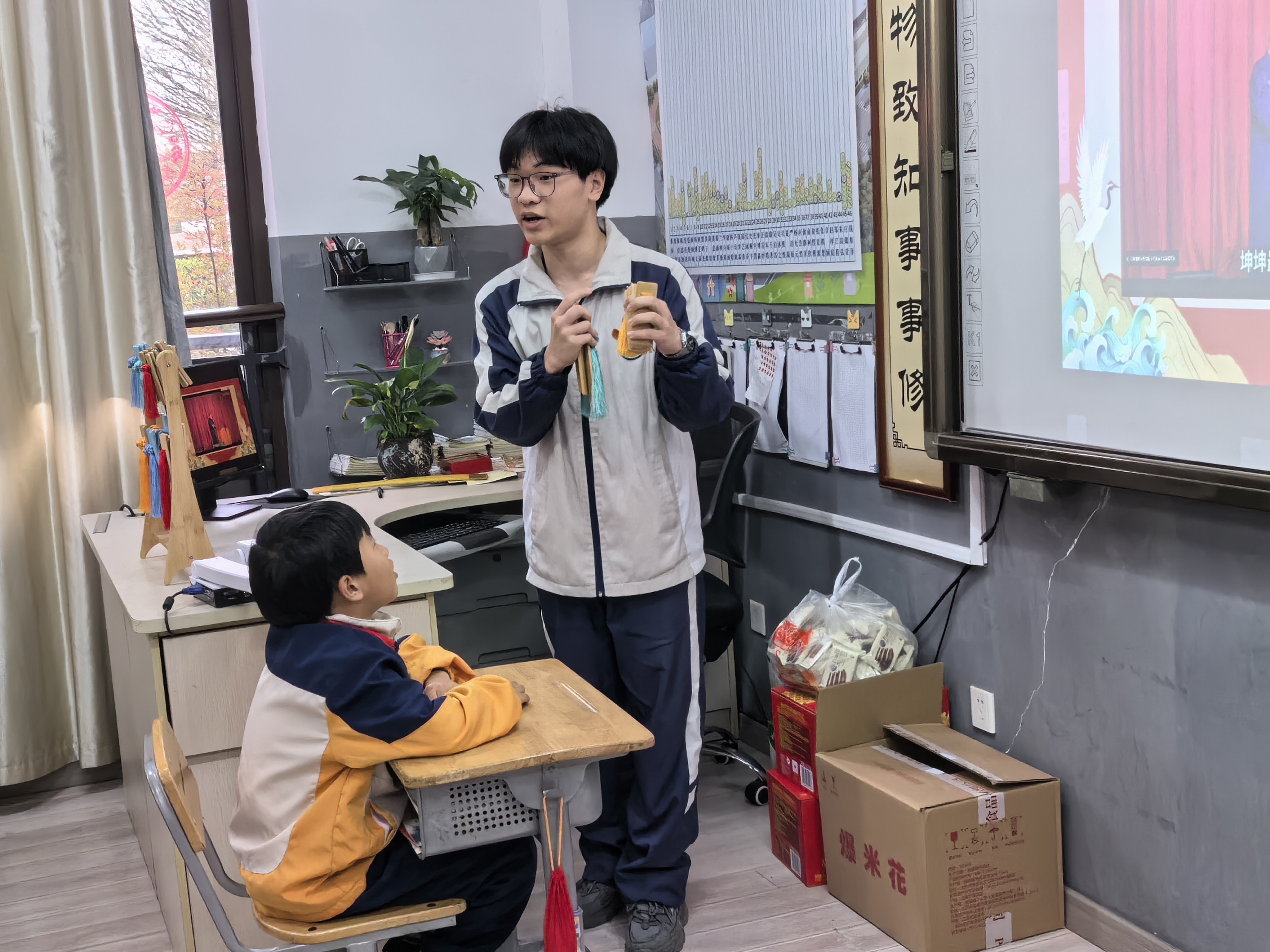 課堂上,林同學從快板起源、如何正確持板等基礎知識講起,風趣幽默的語言和極具感染力的示范表演讓小朋友們學習曲藝的熱情高漲。雖然大家是零基礎,但都表現出極大的興趣,有的小朋友甚至在短時間內就學會了教學的內容并上臺展示。課后,小朋友們紛紛開心地說道:“原來我只從電視里看到過快板,以為很難,沒想到這么簡單。”
