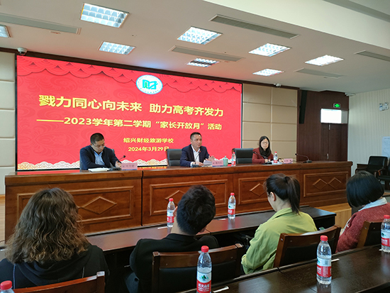 為助力高三高考,加強家校聯系,形成教育合力,紹興財經旅游學校于3月29日舉行“家長開放月”活動。紹興財經旅游學校黨委書記魯偉民,黨委委員、副校長林慧以及21級高考班家長代表參加活動,活動大會由黨委委員、副校長葉方便主持。