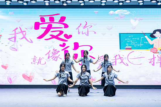 開幕式期間,大屏幕播放的學生祝福視頻以及學生代表為班主任獻花的環節,讓班主任們笑中帶淚,充滿感動。學生們帶來的改編歌曲《世界這么大還是遇見你》、舞蹈《最美的季節》和教師的詩朗誦《我愛你 就像你愛我一樣》穿插其中,使整個開幕式充滿了溫馨的師生情誼。