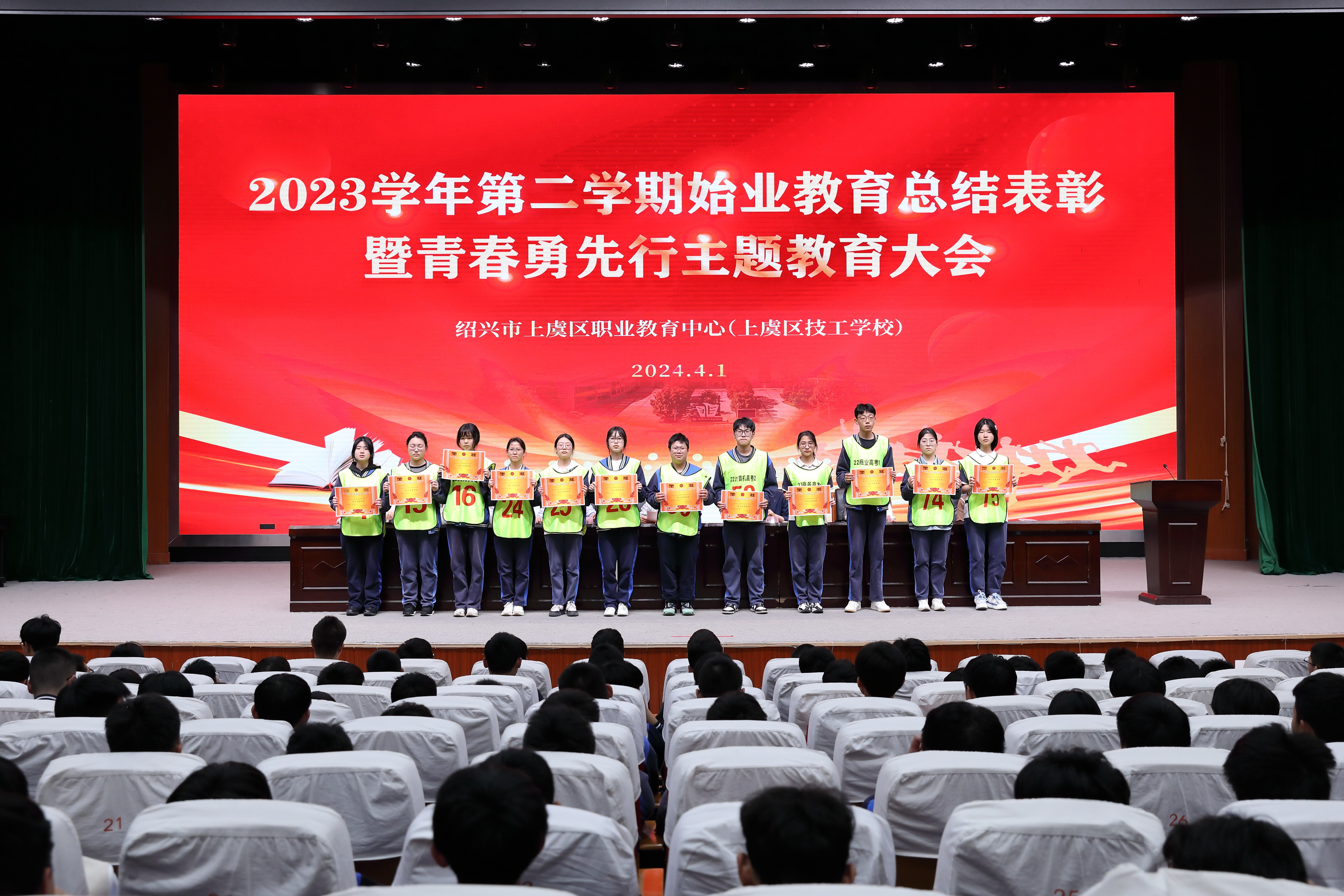 近日,紹興市上虞區職業教育中心舉行“青春勇先行”主題教育暨2023學年第二學期始業教育表彰大會,總結開學階段始業教育成果。大會通過“云上+線下”的方式開展。