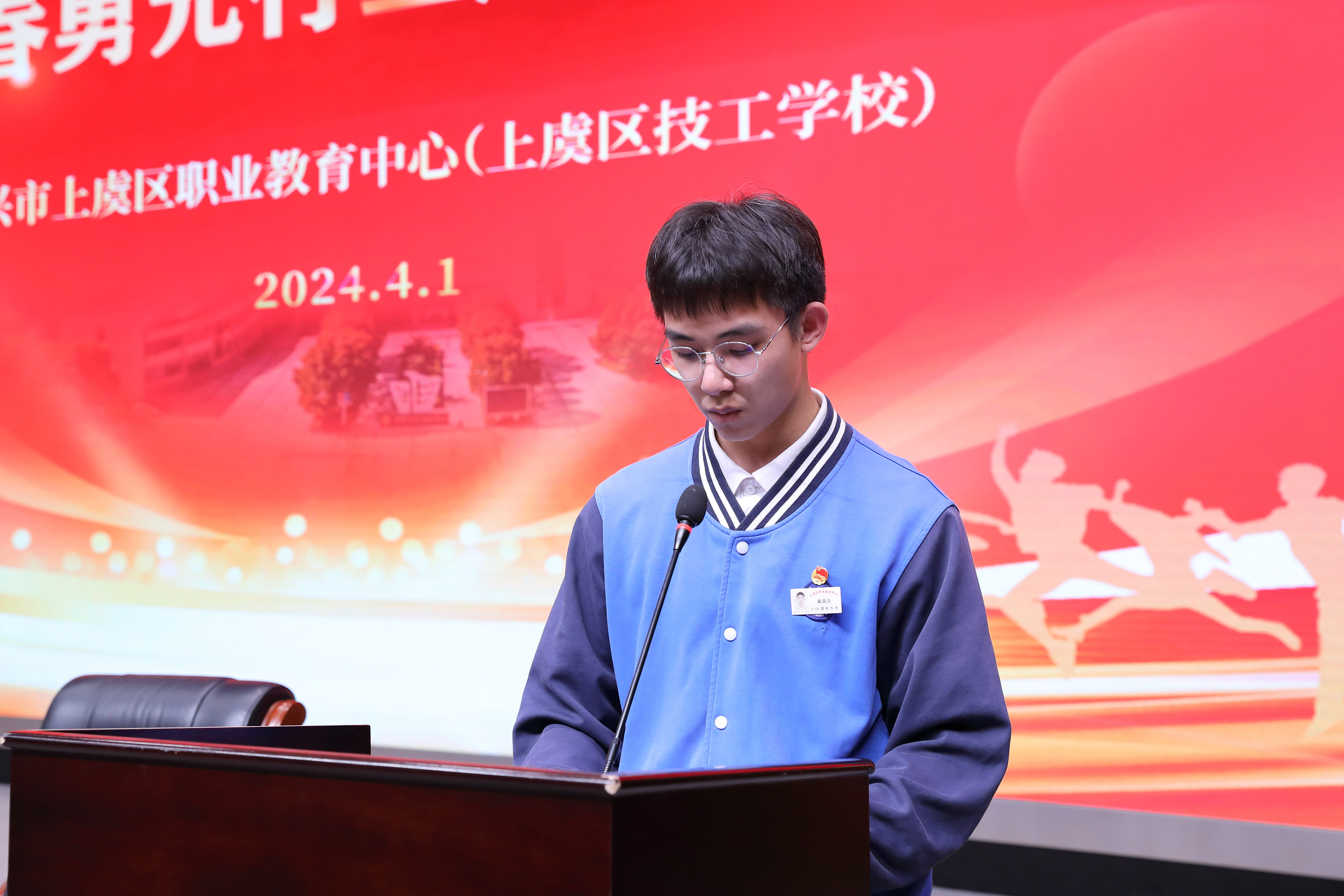 學生代表戴嘉浩同學發言,倡議全體同學發揚雷鋒精神,無私奉獻、勇于擔當,“以青春之我,奮斗在職教”。他表示:“我們既是學校‘三生教育’的受益者,更應該成為傳播者和踐行者,爭做職教的‘青春代言人’。”
