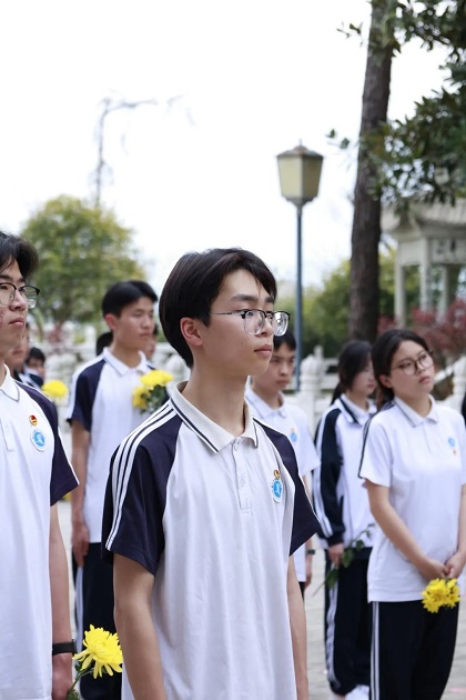 在烈士陵園前,同學們懷著無比崇敬的心情進行了默哀。這一刻,時間仿佛凝固了,只剩下風中的哀思和心中的敬仰。這不僅是對革命烈士的深深敬意和緬懷,更是一種對英勇無畏、為國家、為民族、為人民獻身的精神的傳承和弘揚。