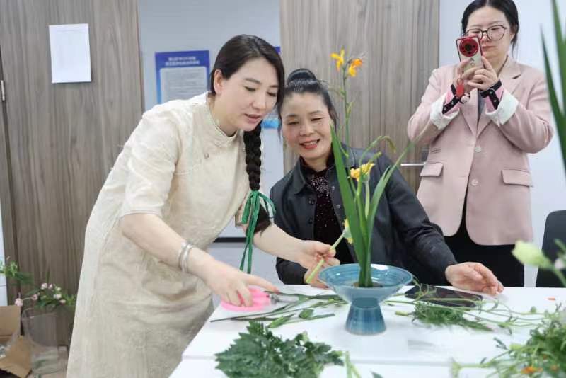 有著豐富經驗的花藝老師現場為居民介紹鮮花常識,從選擇與購買,到鮮花的保養與擺放,再到插花藝術的講解,在四溢的生機與浪漫中,在悠然的花香浸染間,享受閑適與自然。