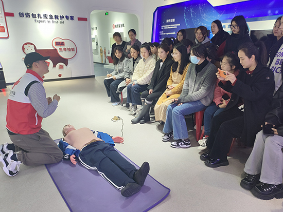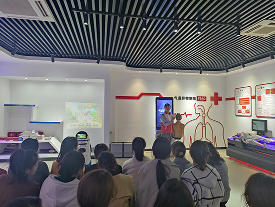 在集中講解后,丁老師帶著大家參觀了生命體驗館的各個板塊,最后大家在丁老師的指導下一一進行心肺復蘇和氣道異物梗阻和解除的練習。