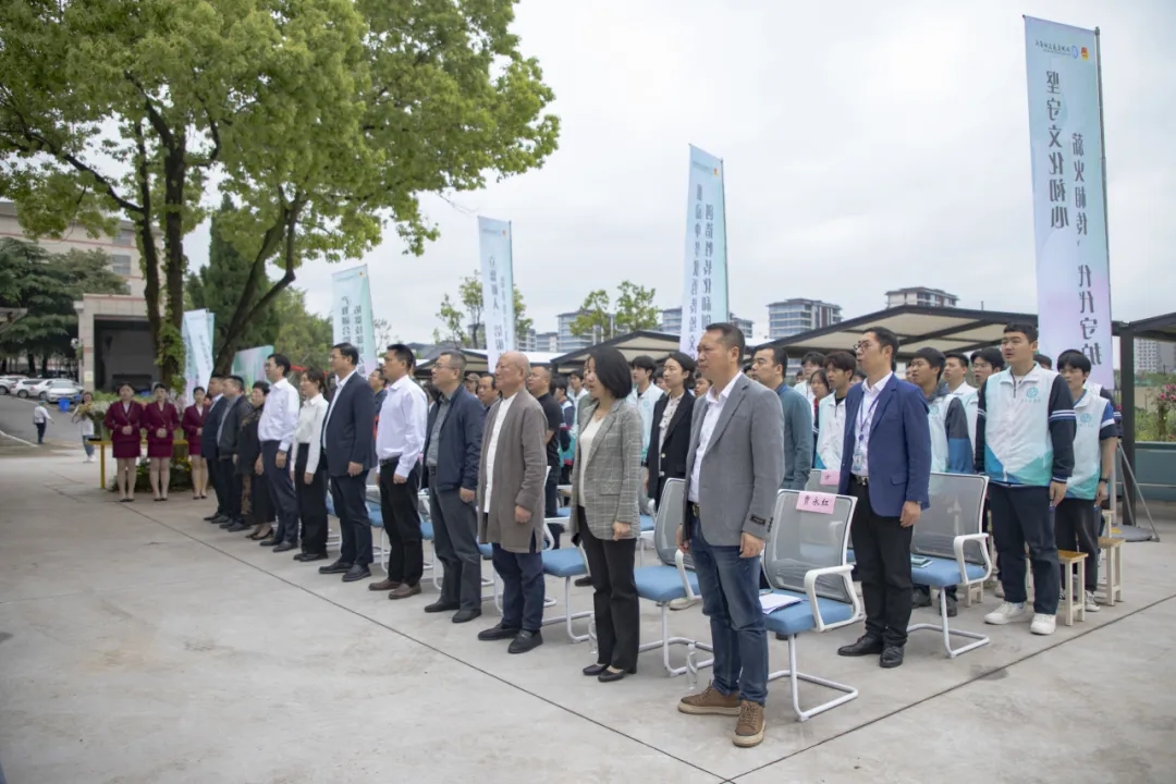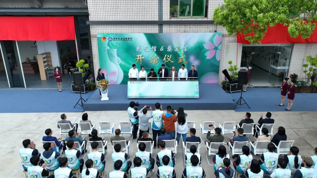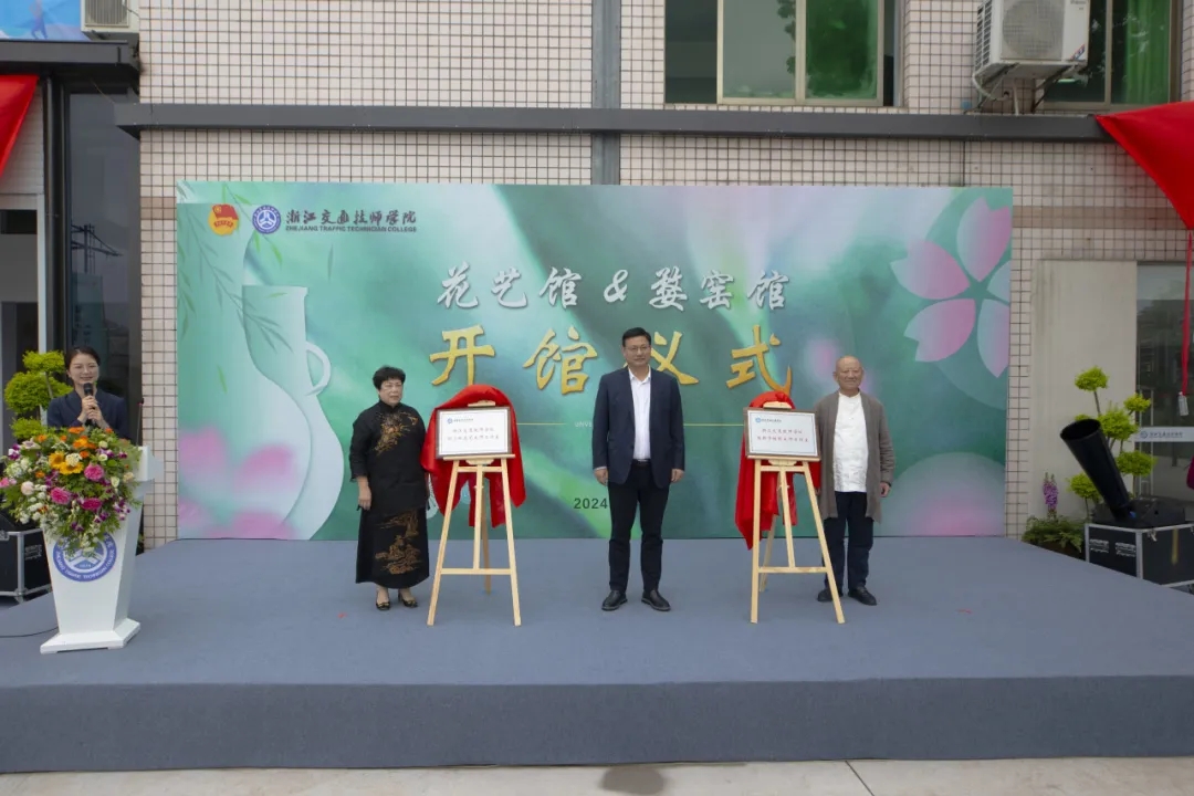 4月18日上午,浙江交通技師學(xué)院星行·花藝館&婺窯館開(kāi)館儀式在主席臺(tái)后方順利舉行。國(guó)家工藝美術(shù)大師、婺窯非遺傳承人陳新華,花藝大師何小紅,金東區(qū)人社局副局長(zhǎng)趙萃,金華市教育局校園安全與體衛(wèi)藝處處長(zhǎng)肖金澎,以及校黨委書(shū)記、校長(zhǎng)李忠躍,黨委委員、副校長(zhǎng)應(yīng)建明,黨委委員、副校長(zhǎng)葉智勇、相關(guān)部門(mén)負(fù)責(zé)人應(yīng)邀出席活動(dòng)。