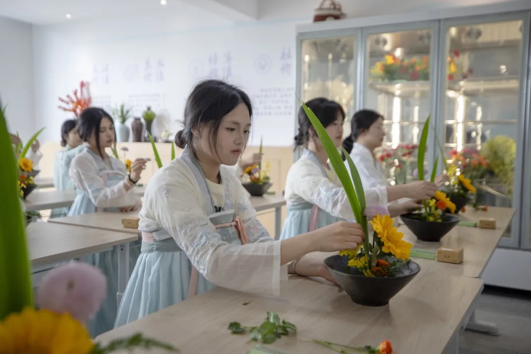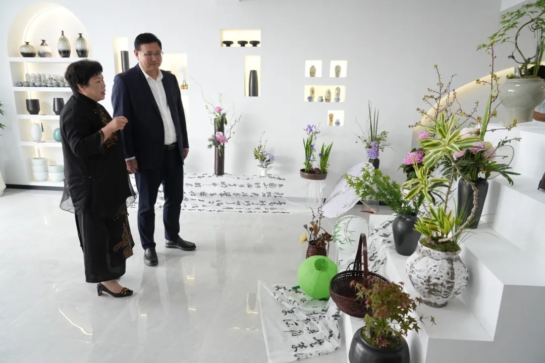 開(kāi)館儀式結(jié)束后,與會(huì)領(lǐng)導(dǎo)和嘉賓參觀了花藝館和婺窯館的內(nèi)部建設(shè)、作品展示、插花表演、拉皮表演、手工捏塑表演等,近距離了解國(guó)家非遺文化婺州窯的內(nèi)涵以及傳統(tǒng)插花藝術(shù)的魅力。