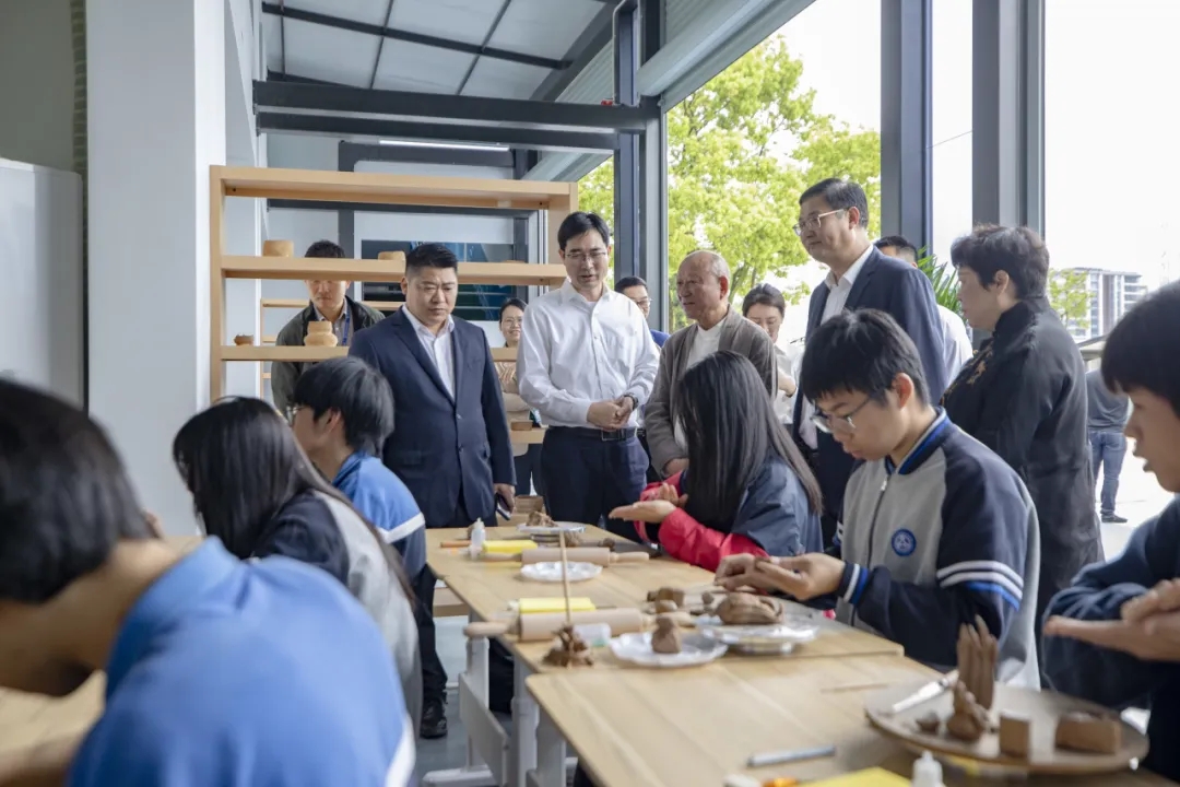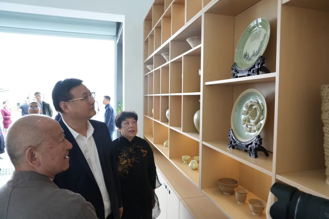 學(xué)校黨委書(shū)記、校長(zhǎng)李忠躍和婺窯大師陳新華、花藝大師何小紅一同為大師工作室揭牌