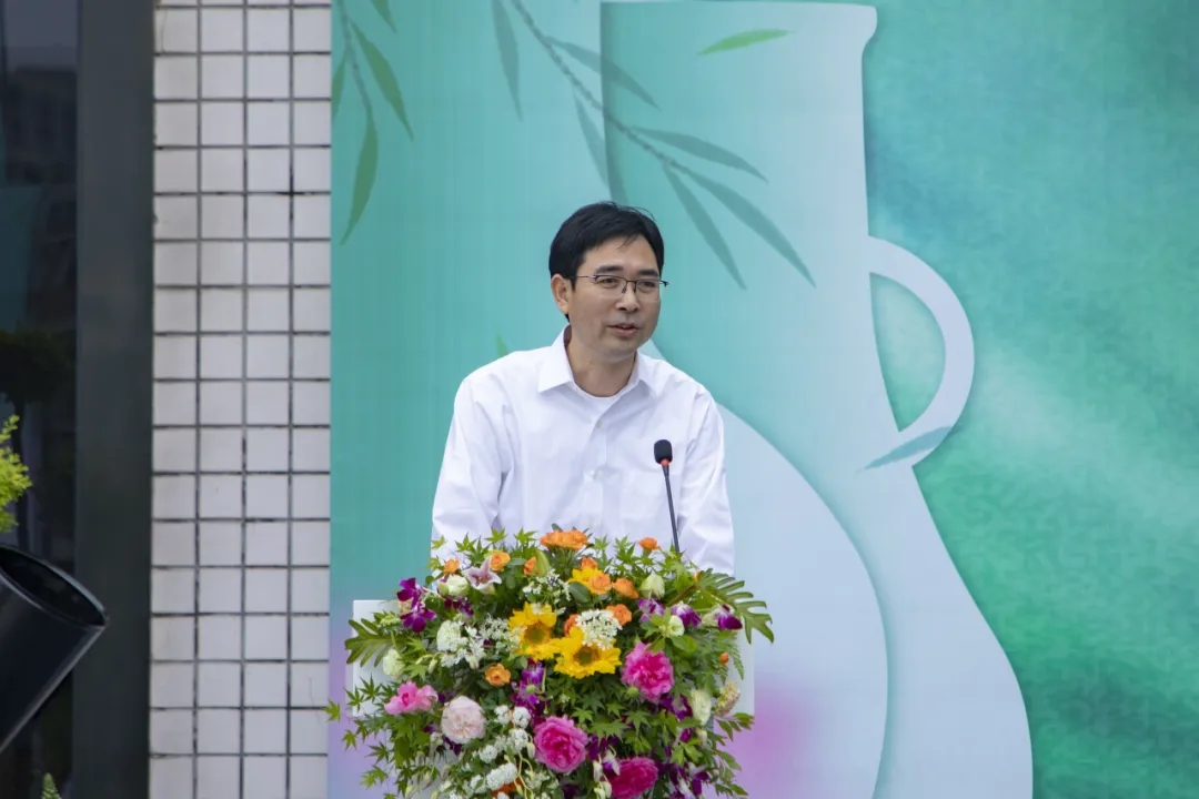 葉智勇副校長(zhǎng)致歡迎辭。他希望,婺窯館和花藝館能夠打造成弘揚(yáng)和傳承優(yōu)秀傳統(tǒng)文化、熏陶和培養(yǎng)學(xué)生人文素養(yǎng)的有效載體,成為展示學(xué)校師生文明風(fēng)貌、助力學(xué)生全面發(fā)展的重要實(shí)踐平臺(tái)。葉副校長(zhǎng)強(qiáng)調(diào),學(xué)校將持續(xù)關(guān)心、關(guān)注兩館的發(fā)展,相關(guān)部門(mén)和老師要充分利用好這個(gè)平臺(tái),有效開(kāi)展形式多樣、特色鮮明、靈活創(chuàng)新的教育教學(xué)活動(dòng),力爭(zhēng)將茶藝生活館打造成學(xué)院德育工作的“金名片”,為學(xué)校培養(yǎng)更多品學(xué)兼優(yōu)的高技能人才、能工巧匠注入強(qiáng)大活力。