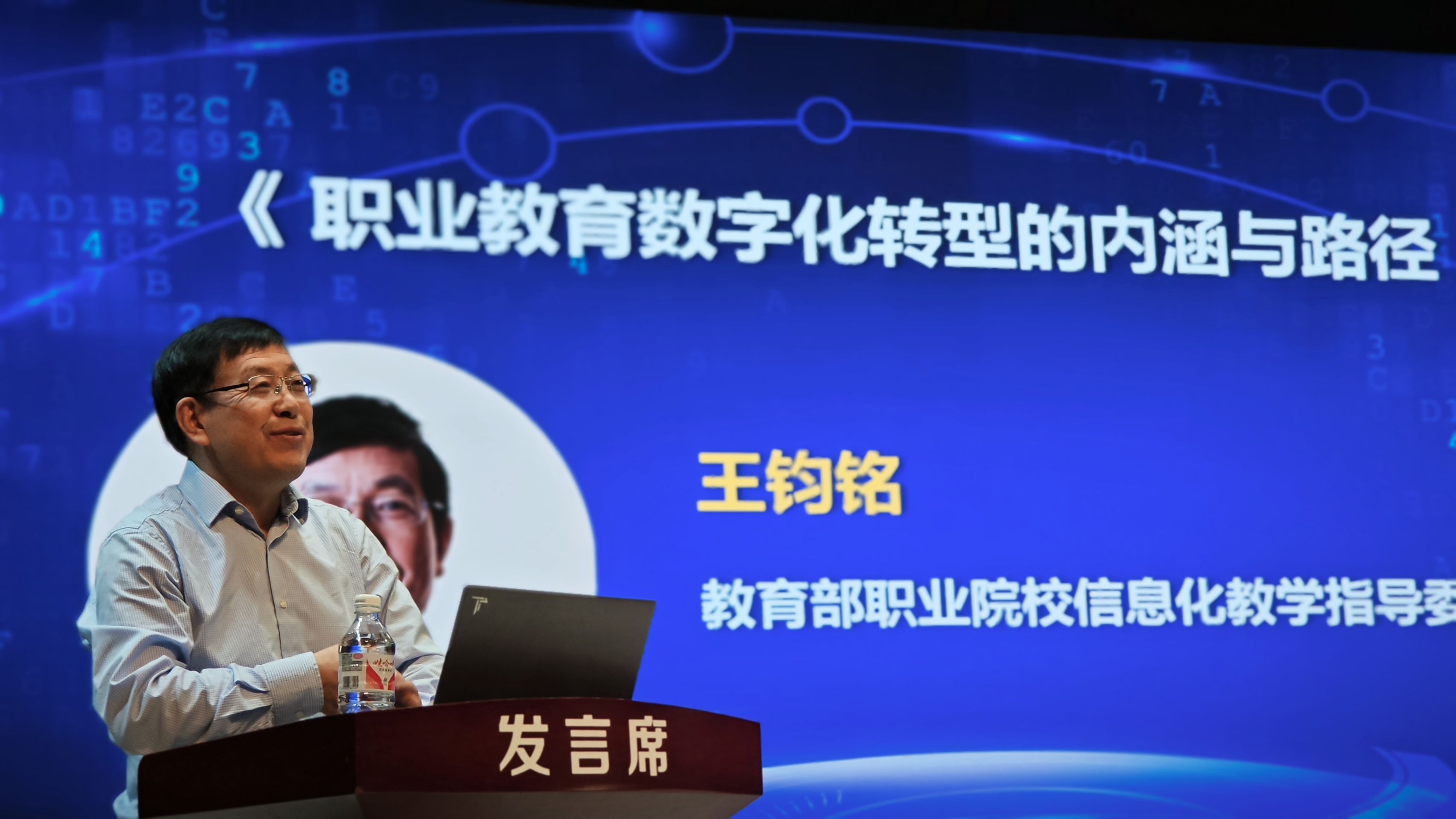 教育部職業院校信息化教學指導委員會主任王鈞銘從《職業教育數字化轉型的內涵與路徑》出發,明確指出:我國的產業經濟即將進入數字時代,教育數字化呈現從數字工具走向全要素、全過程、全方位的系統化、體系化的演進趨勢。詳細闡述了專業人才培養域的數字化轉型,用數字專業化推動專業數字化。