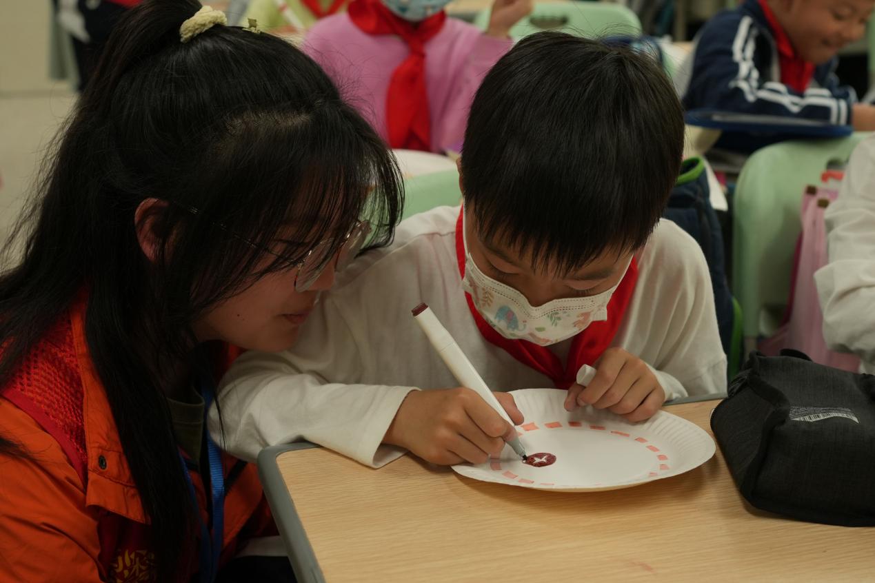 在2313班學(xué)生的悉心指導(dǎo)下,二年級(jí)的小朋友們動(dòng)手在紙盤(pán)上繪制自己喜愛(ài)的食物。孩子們運(yùn)用豐富的色彩,巧妙地表現(xiàn)出食物的視覺(jué)特點(diǎn),每一筆每一劃都流露出童真與創(chuàng)意。有的小朋友在紙盤(pán)上認(rèn)真地寫(xiě)下了“珍惜糧食,粒粒不易”的字樣;有的則繪制了食堂飯盒的形狀,并在其中精心描繪了各種菜肴,使美食仿佛躍然紙上;更有小朋友在紙盤(pán)上書(shū)寫(xiě)了關(guān)于珍惜糧食的詩(shī)詞,將語(yǔ)文學(xué)習(xí)與光盤(pán)行動(dòng)的理念巧妙融合。