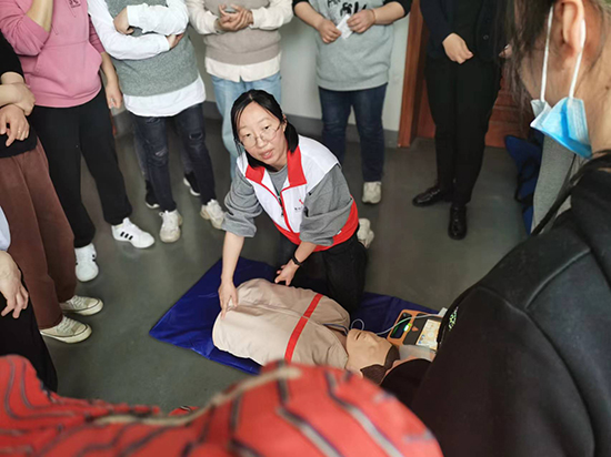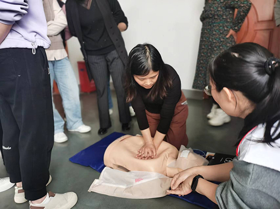 本次活動邀請了多名資深紅十字應急救護師來給大家開展培訓。老師們首先以淺顯易懂的語言,結(jié)合實操,將紅十字運動與救護概論、心肺復蘇和AED操作、氣道異物梗阻、創(chuàng)傷救護等知識教授給大家,重點講解了心肺復蘇和AED操作。