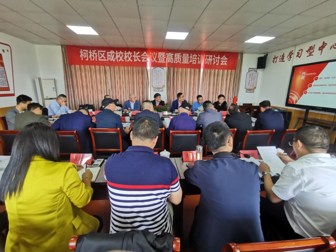 浙江開放大學柯橋學院(區社區學院)、安昌成校、福全成校、楊汛橋成校、平水成校、王壇成校六家單位負責人分別就做好高質量培訓談工作思路和具體措施。柯橋學院、蘭亭成校、華舍成校三家單位圍繞新時期成人學校品牌建設,暢談方法途徑和創建亮點。區教體局職成教科、區社區教育指導中心、區教師發展中心相關負責人分別在會上布置工作。