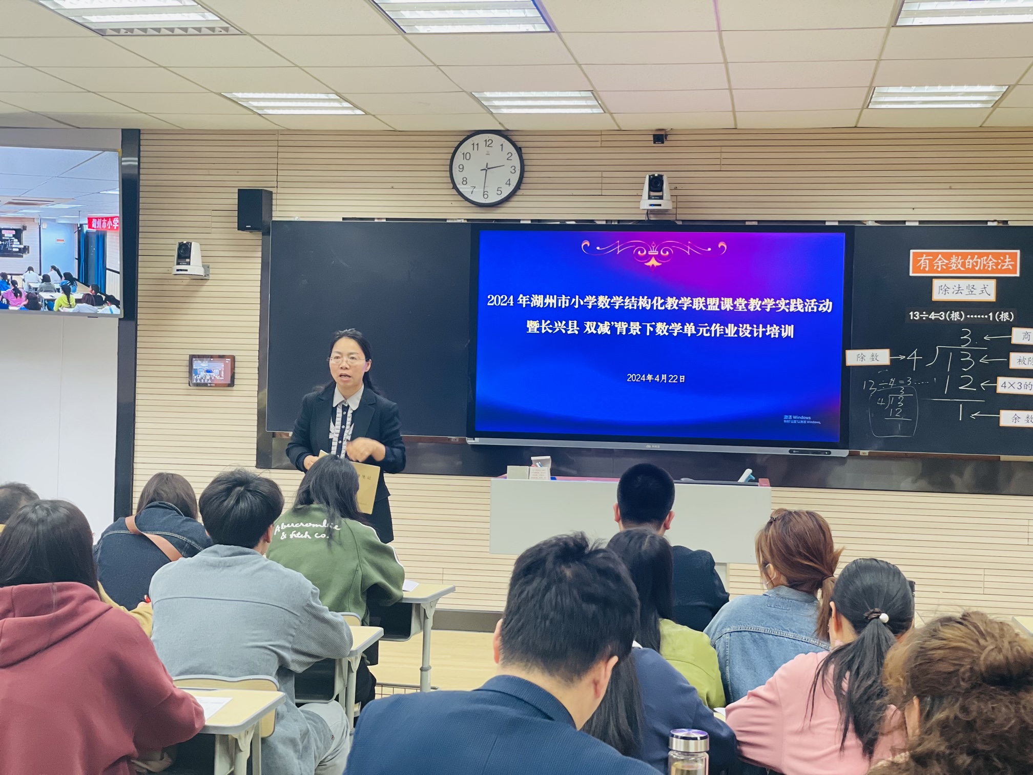 隨后,培訓教師走進長興實驗二小,開展了聽課、磨課和評課活動。教師們同課異構,展現出了不同的教學風采,思維的碰撞讓每一堂課都煥發出新的光彩。吳興區小學數學教研員陳國權從小學數學學科邏輯、學生學情、師生活動等方面給出評價。他指出,“剩余”數學的教學要讓學生理解生活實際再區別數學表達,為后期的除法教學打好基礎,在學習除法豎式中,可以做一些圖、算式、豎式的匹配活動,讓學生感受到除法豎式的與眾不同。