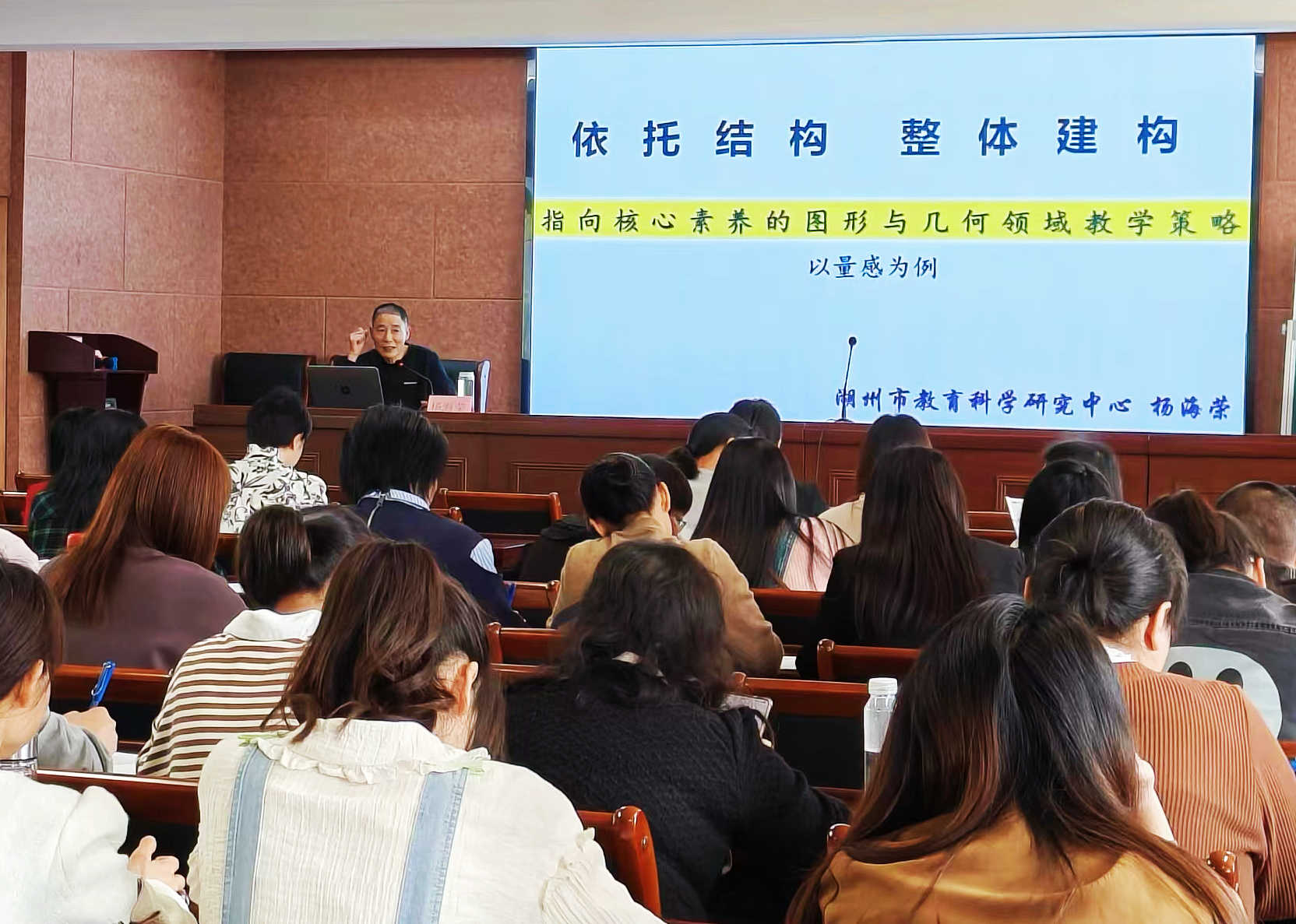 湖州市教育科學研究中心的小學數學教研員楊海榮帶來了講座《依托結構,整體建構》,他深入淺出地解讀了結構化單元整體教學的理念、價值取向和基本內涵,并通過實際案例展示了如何進行結構化單元整體教學的操作,講座內容豐富,既有理論高度,又有實踐指導,讓教師們受益匪淺。