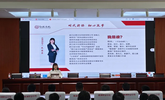 本次活動邀請的是23烹飪2班學生錢奕航的家長朱國琴女士——浙江紅圖文化科技有限公司總經(jīng)理、湖州市廣告協(xié)會副會長。會議由烹飪旅游系辦周建良老師主持,23級200多名學生和班主任參加了此次講座。周老師介紹了舉辦家長導師進校園的意義,讓學生近距離聆聽家長導師的成長經(jīng)歷,將所學所得轉(zhuǎn)化為成長的動力,隨后,向朱經(jīng)理頒發(fā)了學校的聘書。