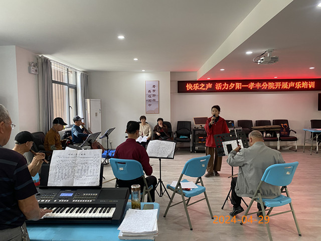 4月29日,安吉縣社區教育學院孝豐分院在學校多功能室開展了老年人聲樂培訓活動,來自轄區的20位聲樂團會員參加活動。