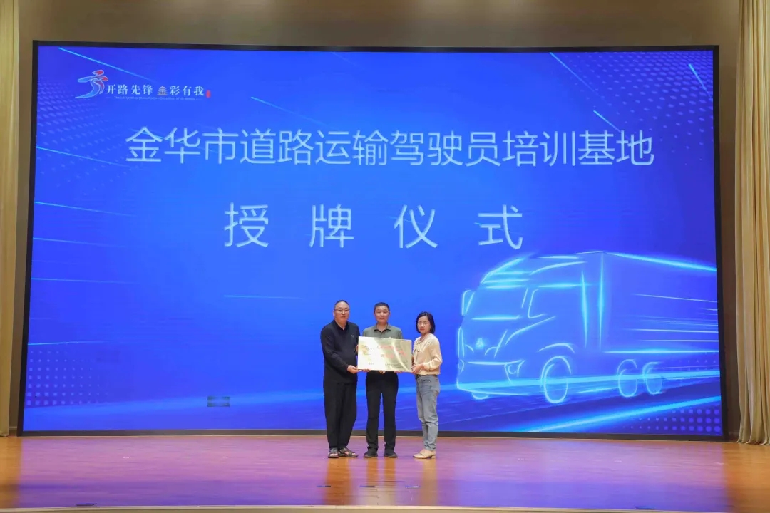 儀式上,浙江交通技師學院被金華市財貿工會、金華市交通運輸局聯合授予“金華市道路運輸駕駛員培訓基地”。該基地的建立,進一步推動金華市道路運輸駕駛員培訓工作的規范化、專業化發展,為培養更多高素質、高技能的貨運駕駛員奠定堅實基礎。