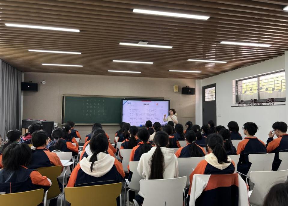 音樂舞蹈教研組骨干教師、市直教壇新秀李璟開設了一節主題為《唱著小調學五聲》的公開樣板課。該課設計時執教老師將自己作詞作曲的的兩首歌曲《娘姆親》和《湖筆先生》,經過課程內容整合,將原本枯燥且有難度的民族五聲調式樂理知識點進行了巧妙融入,頓時給人一種全新的體驗。這一大膽嘗試既體現了教師勇于承擔起傳承地方特色文化、增強民族文化自信的使命感,更彰顯了其扎根課堂、敢于尋求創新的新發現。