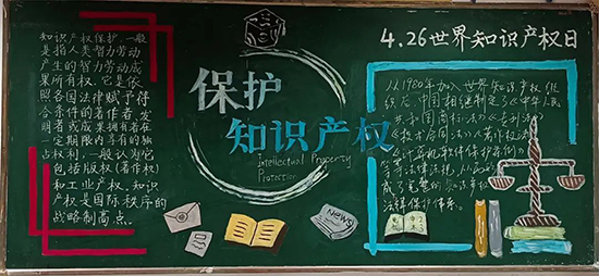每班圍繞“知識產權轉化運用促進高質量發展”這一主題,結合職業學校特色出一期黑板報,由校學生處、團委、專業部一起評選出優秀作品并表彰。
