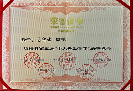 馬紀孝,2010年8月到德清職業(yè)中專機械專業(yè)任教,現(xiàn)任中共德清縣職業(yè)中專第一總支部委員會智造支部書記、德清職業(yè)中專政教處處長、學校工會組織委員。“踏踏實實工作,認認真真育人”是他人生的座右銘,從教14年,作為一名光榮的人民教師、中共黨員,他始終不忘初心,勤勤懇懇,任勞任怨,用心靈守護著這份平凡而又神圣的事業(yè),以對黨和人民滿腔的熱忱積極工作,扎根于職業(yè)教育的這一方沃土,在平凡的崗位上恪盡職守,無私奉獻著。馬紀孝工作認真負責,教學成績顯著,育人貢獻突出,得到了學校和上級部門的肯定,多次被上級主管部門授予嘉獎,被評為全國職業(yè)院校實踐教學能手、浙江省青年工匠、湖州市優(yōu)秀教師、湖州市優(yōu)秀工會工作者、湖州市優(yōu)秀德育工作者、湖州市教壇新秀、湖州市優(yōu)秀科技輔導老師、德清縣抗疫先鋒、德清縣優(yōu)秀班主任、德清縣級優(yōu)秀共青團員、德清縣優(yōu)秀德育導師、德清縣優(yōu)秀工會工作者、德清縣平安校園先進個人等榮譽稱號。