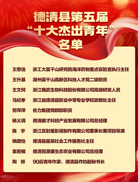 近日,德清縣第五屆“十大杰出青年”名單揭曉,德清職業(yè)中專馬紀孝榮獲“十大杰出青年”稱號。“十大杰出青年”是德清縣青年的最高榮譽,旨在選樹和宣傳德清縣各領域優(yōu)秀青年典型,引領全縣青年為德清發(fā)展注入青春智慧和力量。馬紀孝榮獲此殊榮充分體現(xiàn)了他在德清教育系統(tǒng)的優(yōu)異成績和廣泛影響力。