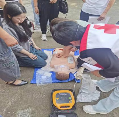 現(xiàn)場,救護培訓(xùn)師一邊用模型演示心肺復(fù)蘇的正確步驟,一邊耐心地向居民們普及心肺復(fù)蘇、AED使用、氣道異物梗阻應(yīng)急處置等急救知識。救護培訓(xùn)師詳細講解并演示了步驟、要點以及注意事項,居民們聚精會神地跟著培訓(xùn)師現(xiàn)場實操,初步了解基本急救技能,提高自己在緊急情況下的自救互救能力。