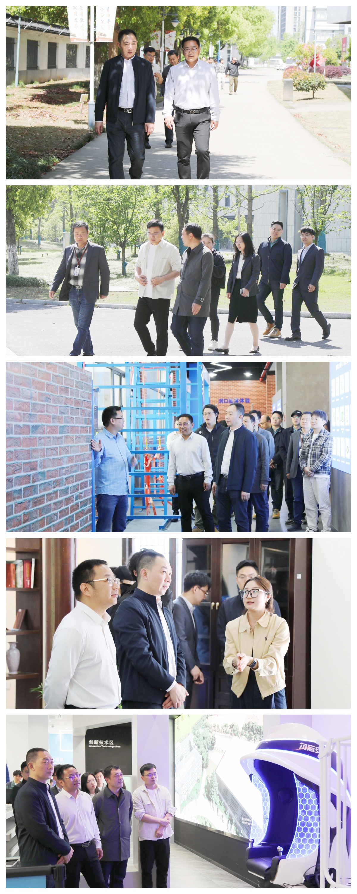 劉陽一行先后走訪了學校安全體驗中心、古建印象園以及數字建筑產教融合基地等場所,實地參觀并詳細了解學校在設施設備、人才培養以及產教融合等方面的相關情況。