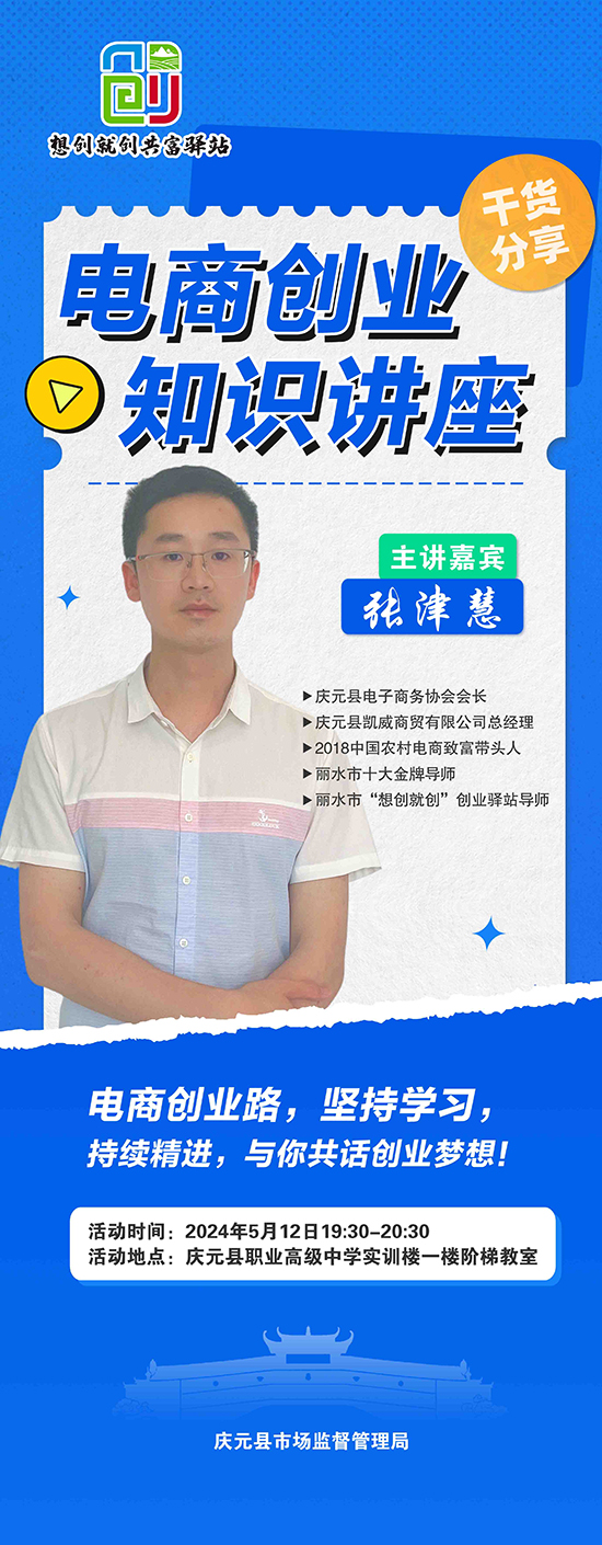 5月12日晚,慶元縣職業(yè)高級中學和慶元縣市場監(jiān)督管理局在實訓樓一樓階梯教室合作舉辦2024年慶元縣職業(yè)高級中學創(chuàng)業(yè)指導講座活動。
