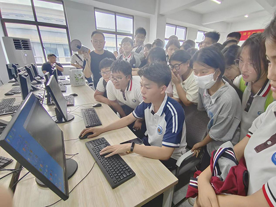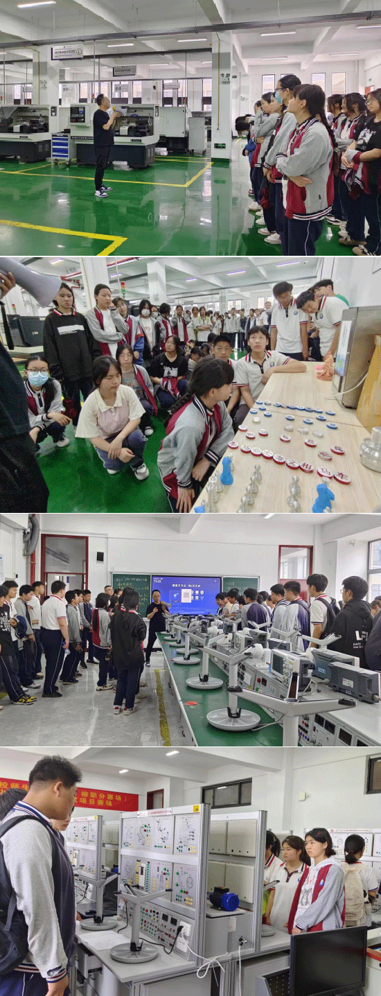 在鉗工、數(shù)車實(shí)訓(xùn)室,學(xué)生們參觀了精密機(jī)械加工設(shè)備,驚嘆于現(xiàn)代科技的神奇與力量;在電子、PLC實(shí)訓(xùn)室,他們了解了電路安裝和調(diào)試流程,對電子產(chǎn)品制作行業(yè)產(chǎn)生了濃厚的興趣;在人工智能實(shí)訓(xùn)室,由學(xué)生親自體驗(yàn)AE技術(shù),感受到了影視后期制作的魅力。