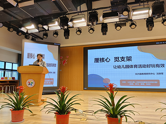 長興縣教育研究中心幼兒教育教研員沈鐵軍作專題講座《厘核心 覓支架 讓幼兒園體育活動好玩有效》,沈老師從“何為體育”“幼兒園體育存在的問題”“如何組織與開展幼兒園體育活動”等方面進行了詳細(xì)的講解,幫助老師理清如何有效有趣地開展幼兒園體育活動。