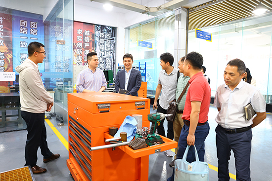 會后,在許月桂的帶領(lǐng)下,各項目負責(zé)人陪同來訪的客人們先后參觀了學(xué)校的實訓(xùn)場地、靈匠培育中心等,詳細了解學(xué)校的專業(yè)教學(xué)實踐環(huán)境,進一步展示了“雙高”整體建設(shè)情況。