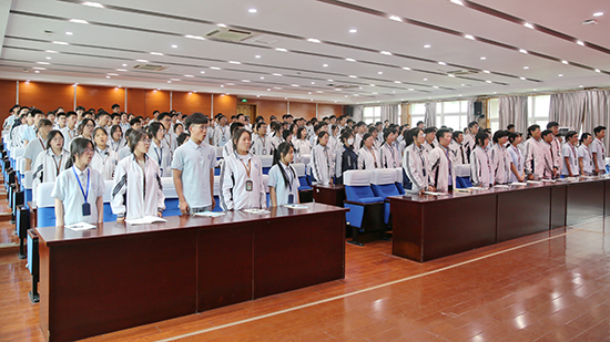 開班儀式在激昂的國歌聲中拉開序幕,全體師生用嘹亮的歌聲抒發(fā)愛國情懷。