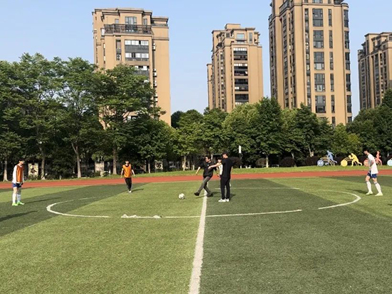 足球賽場,同學(xué)們揮灑汗水,為榮譽而戰(zhàn)。他們奮力奔跑,用雙腳詮釋著對足球的熱愛。