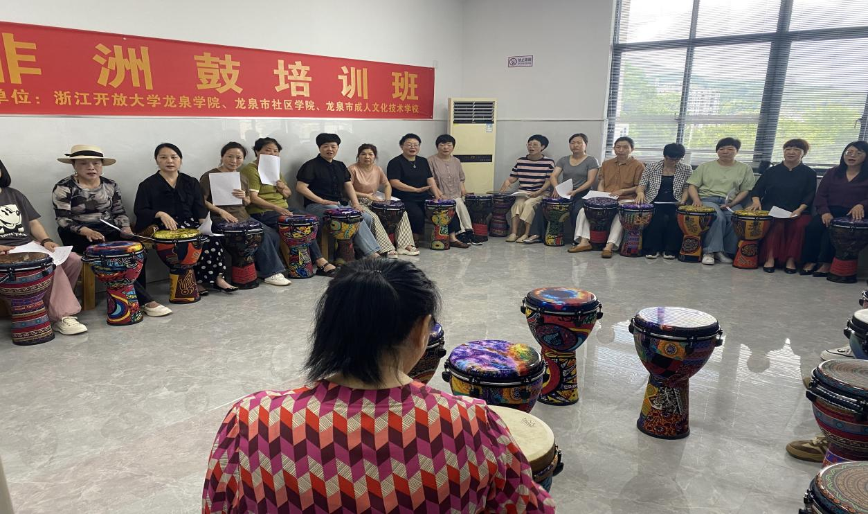 5月24日,由浙江開放大學龍泉學院主辦,龍泉市社區學院、龍泉市成人文化技術學校承辦的2024年浙江開放大學龍泉學院第一期非洲鼓正式開班。