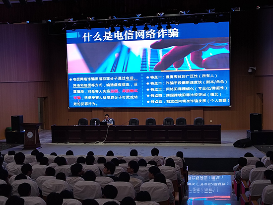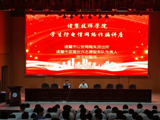 為提升學(xué)生網(wǎng)絡(luò)素養(yǎng),防范電信詐騙發(fā)生,并向?qū)W生普及網(wǎng)絡(luò)安全知識(shí)和相關(guān)法律,強(qiáng)化學(xué)生自我保護(hù)和防范能力,增強(qiáng)網(wǎng)絡(luò)安全意識(shí)和法治意識(shí),營(yíng)造安全、健康、文明的網(wǎng)絡(luò)環(huán)境,5月24日,諸暨市公安局陶朱派出所、諸暨市藍(lán)盾反詐志愿服務(wù)隊(duì)負(fù)責(zé)人陳宇炯警官走進(jìn)諸暨技師學(xué)院,為現(xiàn)場(chǎng)400余名學(xué)生帶來防電信網(wǎng)絡(luò)詐騙講座。