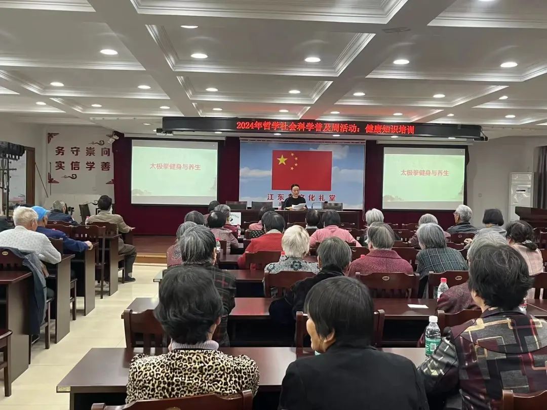 太極拳是中華傳統(tǒng)養(yǎng)生功法,它不僅可以增強身體的靈活性和協(xié)調(diào)性,還有助于調(diào)理身心,提升整體健康水平。講座中,方老師以通俗易懂的語言向大家普及了太極拳的流派、運動特點、養(yǎng)生效果等,并通過展示呼與吸的有機結(jié)合,運用一招一式,為在座的學員展示了太極拳的博大精深。方老師向在座的太極愛好者們耐心詢問之前練習情況,結(jié)合“拳友”們的學習進度教授大家蹲馬步、抱球等簡單的基礎(chǔ)動作并進行了示范,以達到日常鍛煉功能。