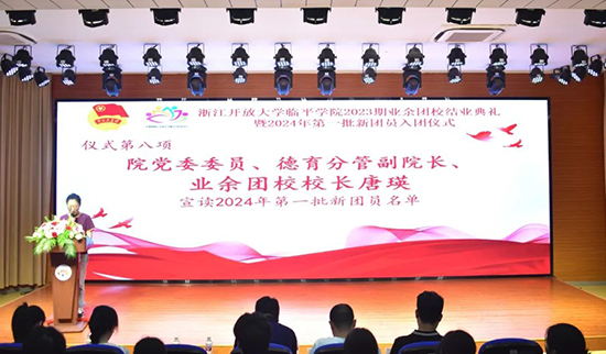 2024年是中華人民共和國成立75周年,也是五四運動105周年,更是貫徹黨的二十大精神的關鍵之年。為進一步加強對學生的愛國主義教育,切實增強共青團員的先進性和光榮感,展現新時代青年朝氣蓬勃的精神面貌,5月21日中午,浙江開放大學臨平學院(臨平商貿職高)在清蓮廳小劇場隆重舉行2023期業余團校結業典禮暨2024年第一批新團員入團儀式。