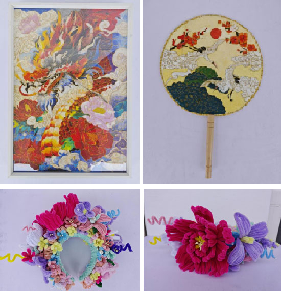 此外,掐絲畫和簪花等非遺手工藝品也在此次展覽中亮相。同學們通過親手制作,將這些傳統(tǒng)技藝與現代設計相結合,創(chuàng)作出了一系列獨具特色的作品。這些作品不僅具有很高的藝術價值,也充滿了濃郁的文化底蘊。
