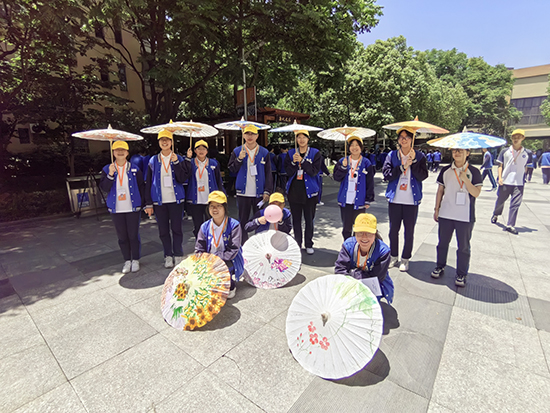 最吸引人眼球的是古風(fēng)傘,大家紛紛來享受了一番“心傘送爽”的感覺。前期各班級學(xué)生親手繪制了美麗的圖案,“向陽而生、循夢而行”,怒放的向日葵、沉甸甸的紫葡萄、不畏嚴(yán)寒的梅花等,無不詮釋著同學(xué)們對人生價值的理解。