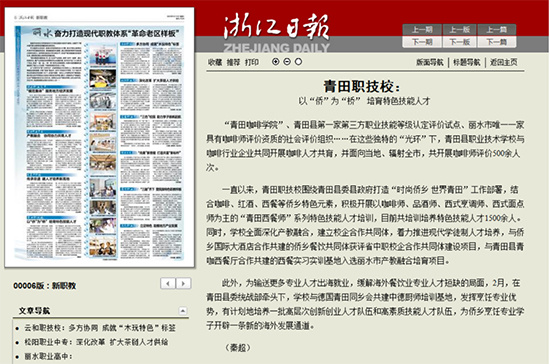 比責任、講擔當,服務發展有為有位。開展“青田中德廚師基地”項目合作,為海外餐飲行業輸送高素質烹飪人才,持續擦亮“國際廚師的搖籃”學校金名片。落實訓并舉法定職責,依托浙江省高技能人才公共實訓基地、青田縣農民學校、青田咖啡學院,發揮專業、師資、設備等優勢,積極開展新型職業農民、“學歷+技能”雙提升、“青田西餐大師”等各類培訓3800余人次。與接東源閥門企業開展產教融合、校企合作,助力學生成長、產業發展。全力做好東西部協作,圓滿完成四川古藺職高30名學生來青交流學習,助力共同富裕。《浙江日報》分別以《海外中餐廳廚師“青田造”》《以僑為橋 培養特色技能人才》為題對學校培養海外廚師以及僑鄉時尚餐飲人才進行了宣傳報道,學校影響力和美譽度進一步提升。