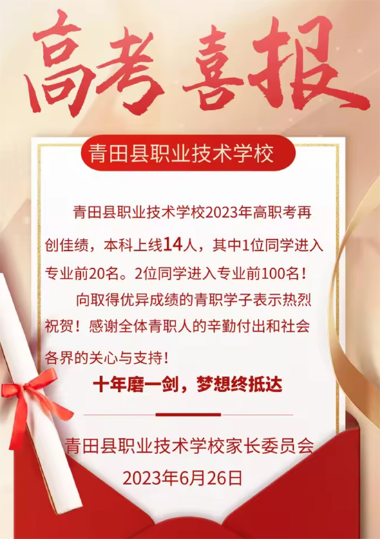 春華秋實,歲物豐成。回首2023年,在職業教育高質量發展的新征程中,學校堅定社會主義辦學方向,以堅韌應對挑戰、以實干勇毅前行,書寫了高質量發展的新篇章,青田縣職業技術學校的適應性與貢獻力不斷增強,影響力、輻射力、美譽度持續提升,學校邁入到進步最快、發展最好的新階段。