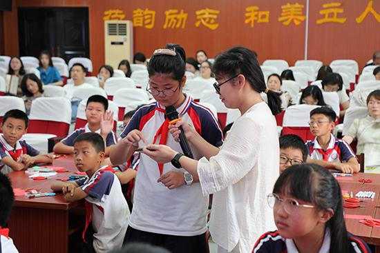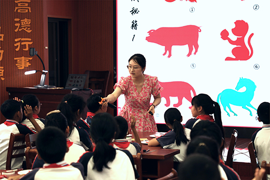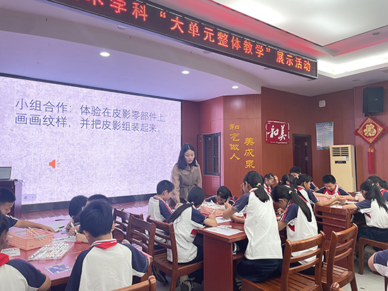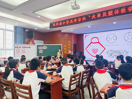 長興美術(shù)青改組成員王潔、張穎、端青云、曹俊四位老師在長興縣美術(shù)教研員高穎老師的指導(dǎo)下開展美術(shù)大單元教學(xué)展示活動,通過《剪紋樣》《生肖剪紙紋樣》《衣飾剪紙紋樣》《皮影紋樣賞析》四節(jié)課例的展示,不僅讓學(xué)生傳承了傳統(tǒng)技藝,還通過陶器、紙盤、肚兜、皮影等載體將剪紙貫穿生活,展望對生活的美好向往。張羽老師以《剪紙悅生活,非遺共傳承》對此次剪紙單元教學(xué)設(shè)計就大單元的概念與基本問題、單元設(shè)計思路、單元目標(biāo)、重難點(diǎn)以及單元評價進(jìn)行了匯報。