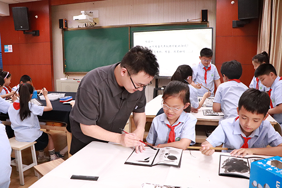 來自陳勇名師團(tuán)隊的王亞圣、丁玲、顧韻赟三位老師,以國畫為主題大單元展示了《奇石》《彩墨游戲》《水墨人物》的三節(jié)課例,課后,陳勇老師從國畫的內(nèi)容、墨色、用筆、形式、風(fēng)格、畫家及其思想等國畫單元教學(xué)的梳理進(jìn)行針對性點(diǎn)評。參訓(xùn)教師對當(dāng)下美術(shù)教材國畫內(nèi)容中呈現(xiàn)的關(guān)注基本知識、技能的共性規(guī)律和遷移、系統(tǒng)思維和核心素養(yǎng)的目標(biāo)達(dá)成進(jìn)行了充分交流。