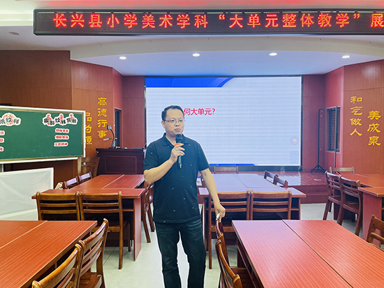 長興縣第一小學(xué)王有福老師圍繞“為何大單元、何為大單元、大單元何為”三個主題,結(jié)合教材,通過生動的舉例闡述了對大單元的理解與思考。