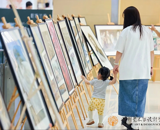 今年校企合作成果展的主題為“藝術人生 看我設計”,共呈現(xiàn)了包含學前教育、工藝美術、服裝、綜合、基礎5個專業(yè)部19個班級210位學生的作品。包含工藝美術專業(yè)部平面、室內(nèi)(景觀)設計,二維、三維動畫工藝三個方向583件作品,基礎專業(yè)部素描、速寫、色彩三個類別19幅畫作,學前教育專業(yè)扎染、蠟染、掐絲等手工作品260余件,服裝專業(yè)部17個童裝系列以及22個女裝系列。