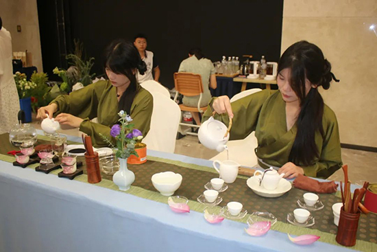 在古色古香的現(xiàn)代服務(wù)學(xué)院展區(qū),同學(xué)們現(xiàn)場展示了泡茶與插花的技藝,手法嫻熟而優(yōu)雅,茶香四溢,花香撲鼻,將大家?guī)肓艘粋€(gè)寧靜而美好的空間。
