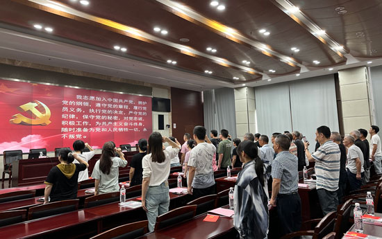 “我志愿加入中國(guó)共產(chǎn)黨,擁護(hù)黨的綱領(lǐng),遵守黨的紀(jì)律……”6月25日上午9時(shí),紹興市柯橋區(qū)泰隆銀行會(huì)議室響起入黨誓詞,這是紹興市柯橋區(qū)柯橋街道各社區(qū)黨務(wù)工作者、紀(jì)檢干部40余人正在參加迎七一主題黨日活動(dòng)。
