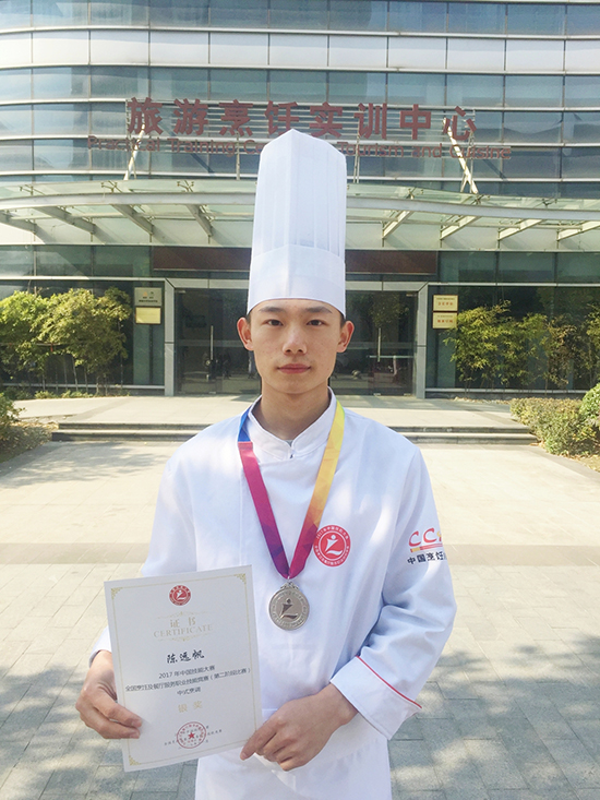 我叫陳遠帆,是浙江省德清縣職業中等專業學校2016屆烹飪專業畢業生。2013年9月,我來到德清職業中專,開啟了人生的職業技能學習征程。2019年至今,我在建德市新安江職業學校任烹飪專業教師,2021年被評為浙江青年工匠。
