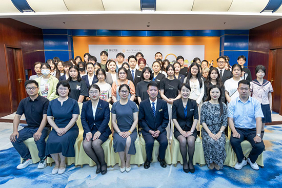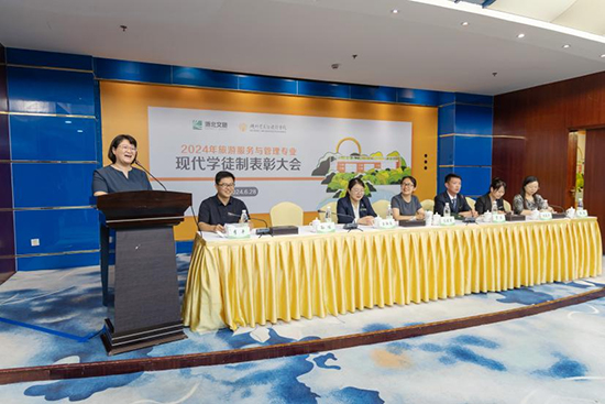 6月28日,浙江省湖州藝術與設計學校在浙北大酒店召開旅游服務與管理專業2024年現代學徒制表彰大會。浙北大酒店副總經理羅成、湖州賓館有限公司總經理助理兼人力資源部經理沈美華、湖州東吳開元名都酒店有限公司人資運營經理王淑南、浙江省湖州藝術與設計學校副校長馮君彥、招生就業處處長殷英、綜合專業部部長孫佳、企業指導師傅以及現代學徒制班級實習生參加會議。