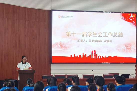 第十一屆勞衛(wèi)部部長沈秋葉在工作報告中回顧了學生會開展的各項工作和成效。在任期內(nèi),學生會堅定理想信念,充分發(fā)揮學生會作為聯(lián)系廣大青年學生的橋梁紐帶作用,始終秉承“服務(wù)師生,提升自我”的宗旨,認真履行學生會職責,積極塑造學生會良好形象,營造濃厚的校園文化氛圍。
